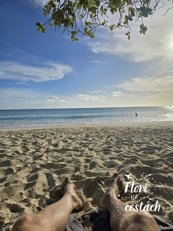 Na pláži v Oistins bylo krásně, i když mě moře hned na začátku trochu vyškolilo. Přišla jedna větší vlna, která mě doslova rozsekala a pořádně mi propláchla dutiny. Karibik je tady sice mělký a fajn, ale podcenit se nevyplácí.