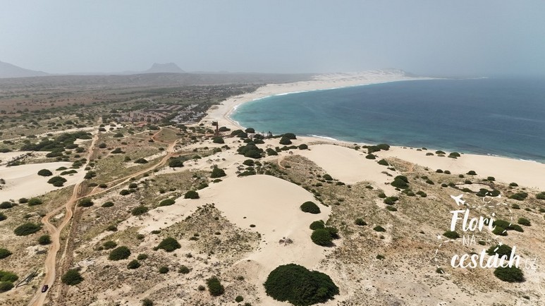 Z vesničky Povoacao Velha jsme přejeli k pláži Santa Monica. K nejdelší pláži celých Kapverd. Sem už nevede asfaltka, ale jen si 5 km vyjetá cesta divokou přírodou. Místní řidiči ty cesty mají zmáklé a moc dobře ví, kudy kam. Autem sám bych si asi netroufal.