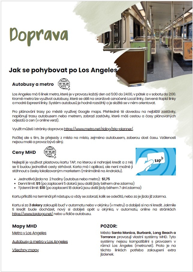 V průvodci najdeš také obecné, ale důležité informace, které se ti při cestování po Los Angeles budou určitě hodit a pomůžou ti s plánováním.